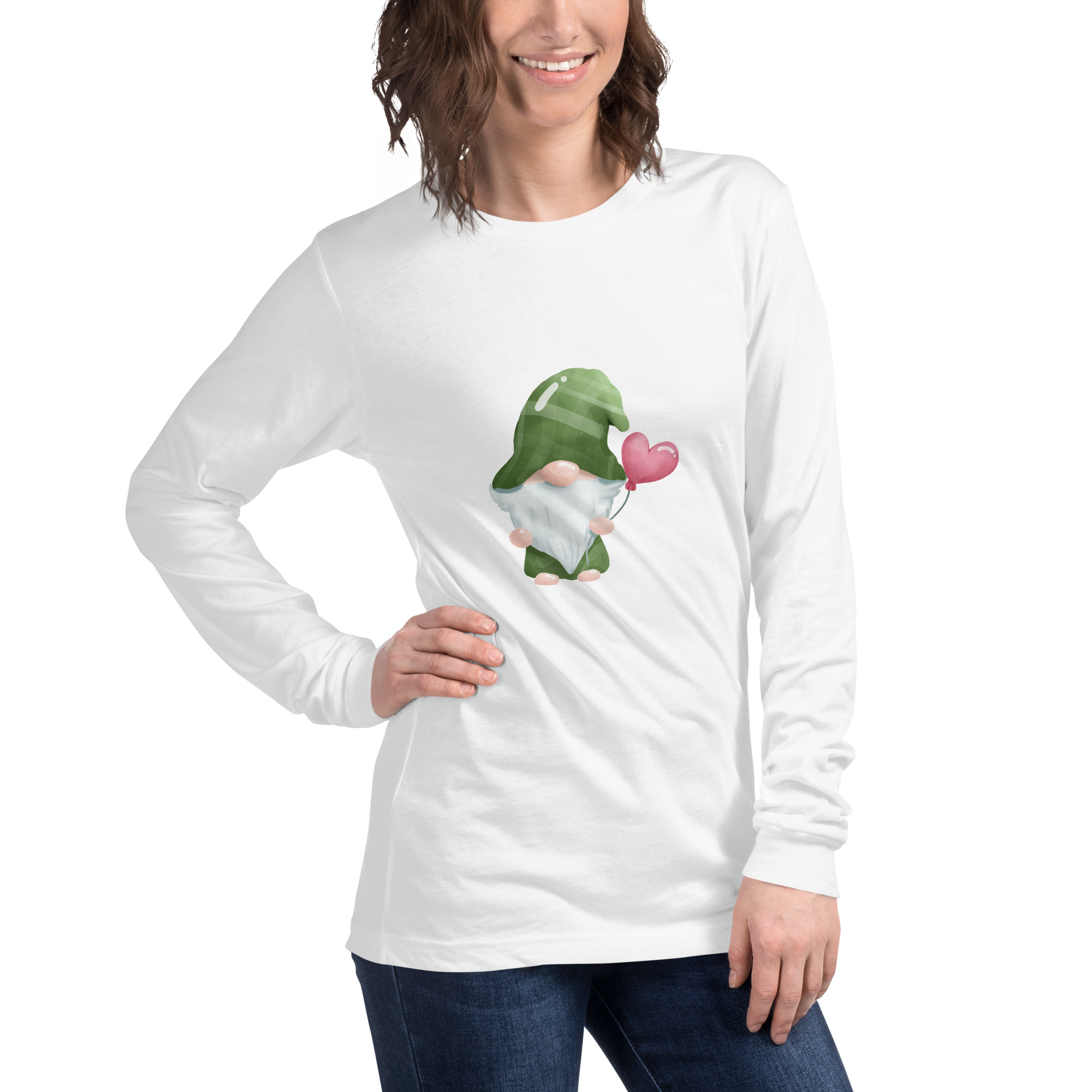 This long sleeve high quality tee, detailed with cute gnome motif will not only look great but feel soft and comfy against your skin.